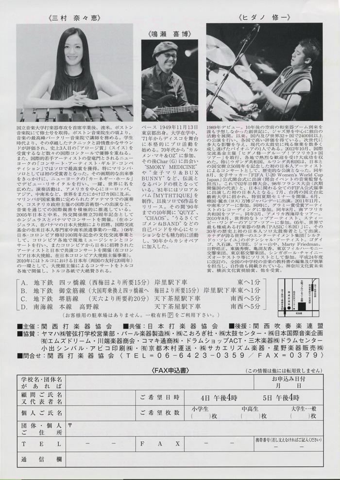 関西打楽器協会さん主催の【パーカッションフェスティバル2012 KANSAI vol.28】にJPCと共同出展いたします。イベントの詳細は以下の通り!