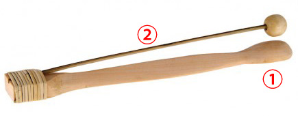 ・柄の部分(②)を指で叩いて音を鳴らします。