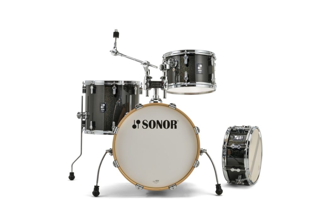 ソナー・ドラムスのスタンダード・ドラムセット・AQシリーズに新たに加わった“AQX”はリーズナブルにこだわったコンパクト・キットです。”ジャズ”のバスドラムは18インチ!