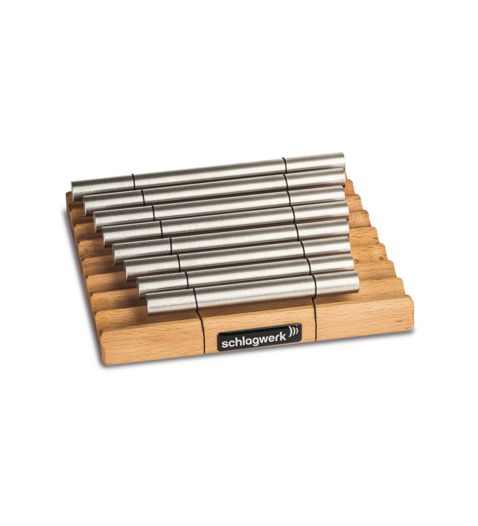 ドイツのカホンメーカー、シュラグヴェルク製のパワー・チャイムです。昨今、音楽療法やヒーリング等にも使われるパワー・チャイム。シュラグヴェルクのパワー・チャイムは、芯のある澄んだ余韻が長く続きます。ドレミファソラシドの1オクターブのチャイムは使い道も自由自在です!