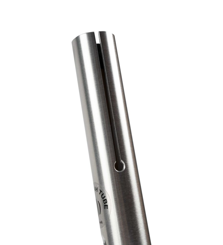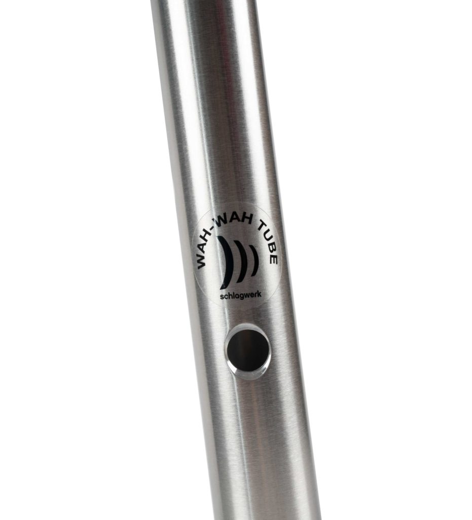ロングトーンの鳴るアルミチューブ。小さな穴を指で開け閉めすると、ワウワウ効果が得られます。