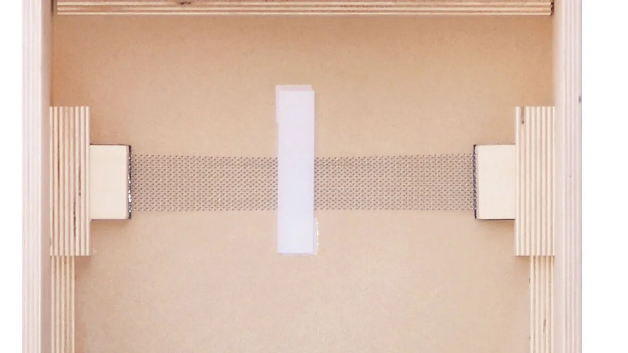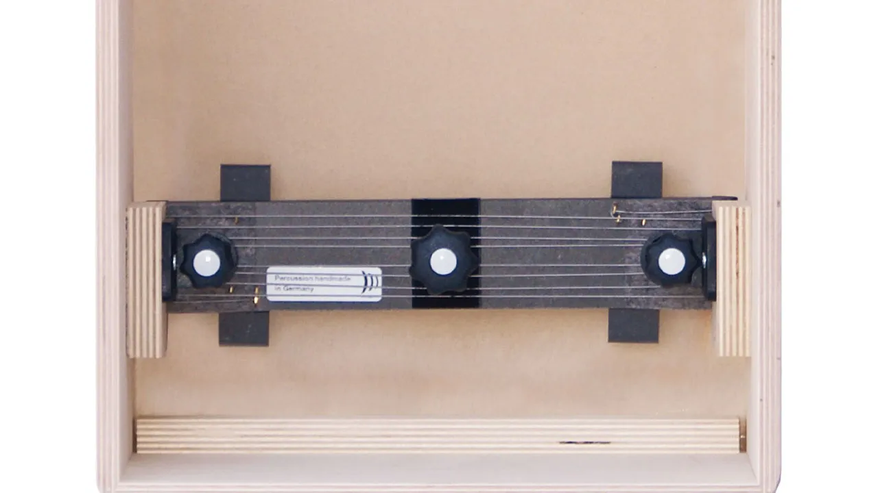 打面への接着面積、ストリングの張り具合などを細かく調整できる響き線。カホン下部に取り付けられています。