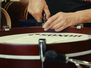 SONORのバスドラムに標準搭載されている、SONORロゴ付きのヘッドです。