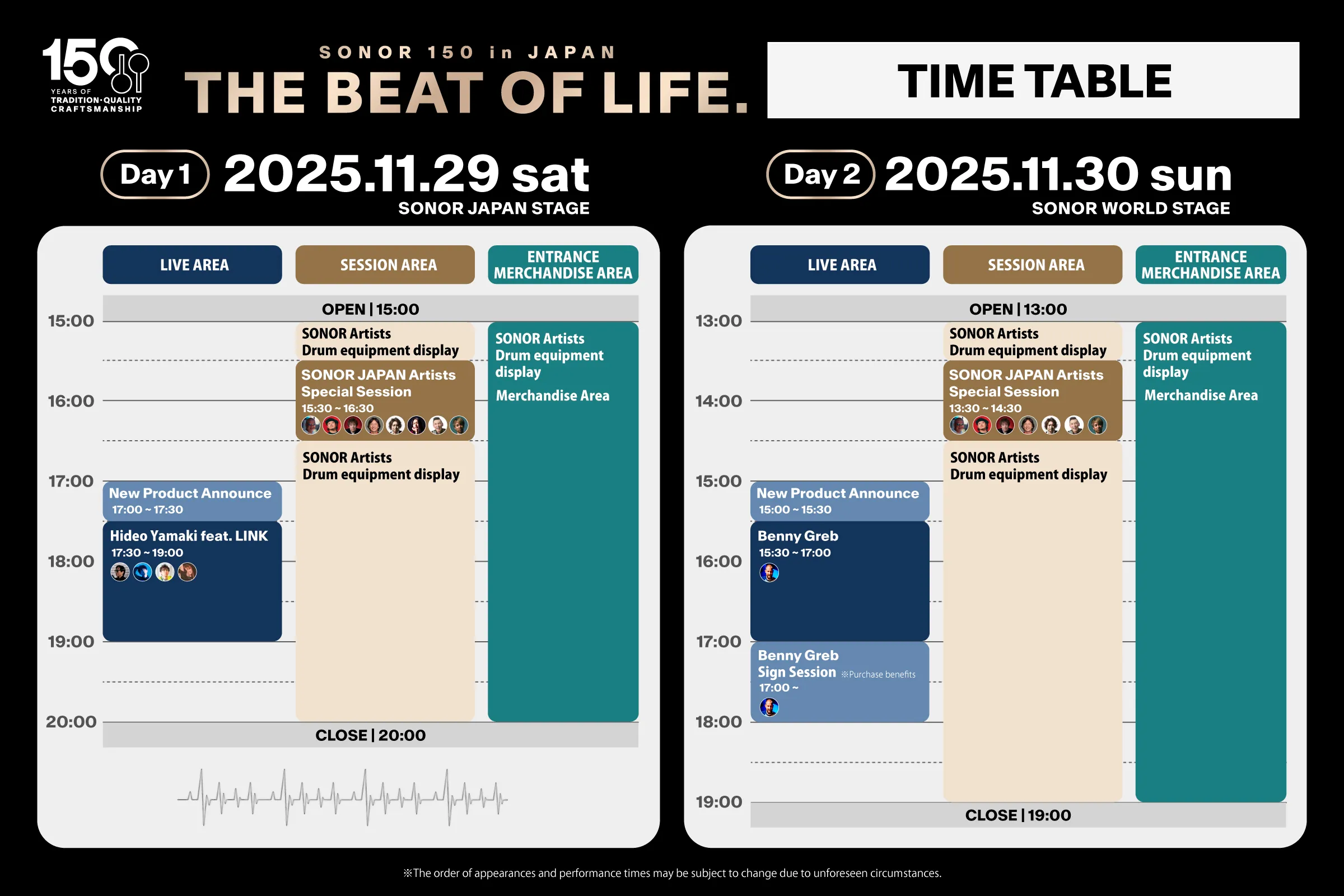 Celebrating 150 years of excellence, the renowned German drum maker SONOR presents a special two-day event in Japan: “THE BEAT OF LIFE.”