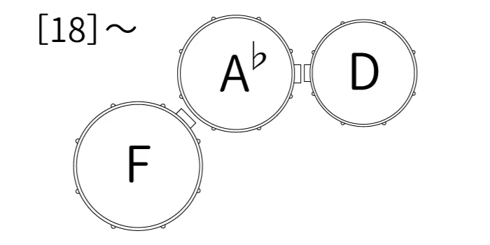 まずチューニングですが、大きい順に F / B♭/ Dに音を合わせ、[18]のD音のロール中に隣のB♭をA♭に変えると3台で演奏出来ます。